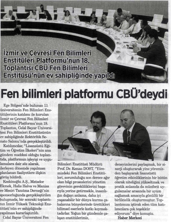 İzmir ve Çevresi Fen Bilimleri Enstitüleri Platformu'nun 18. Toplantısı Celal Bayar Üniversitesi Fen Bilimleri Enstitüsü'nün ev sahipliğinde gerçekleştirildi..